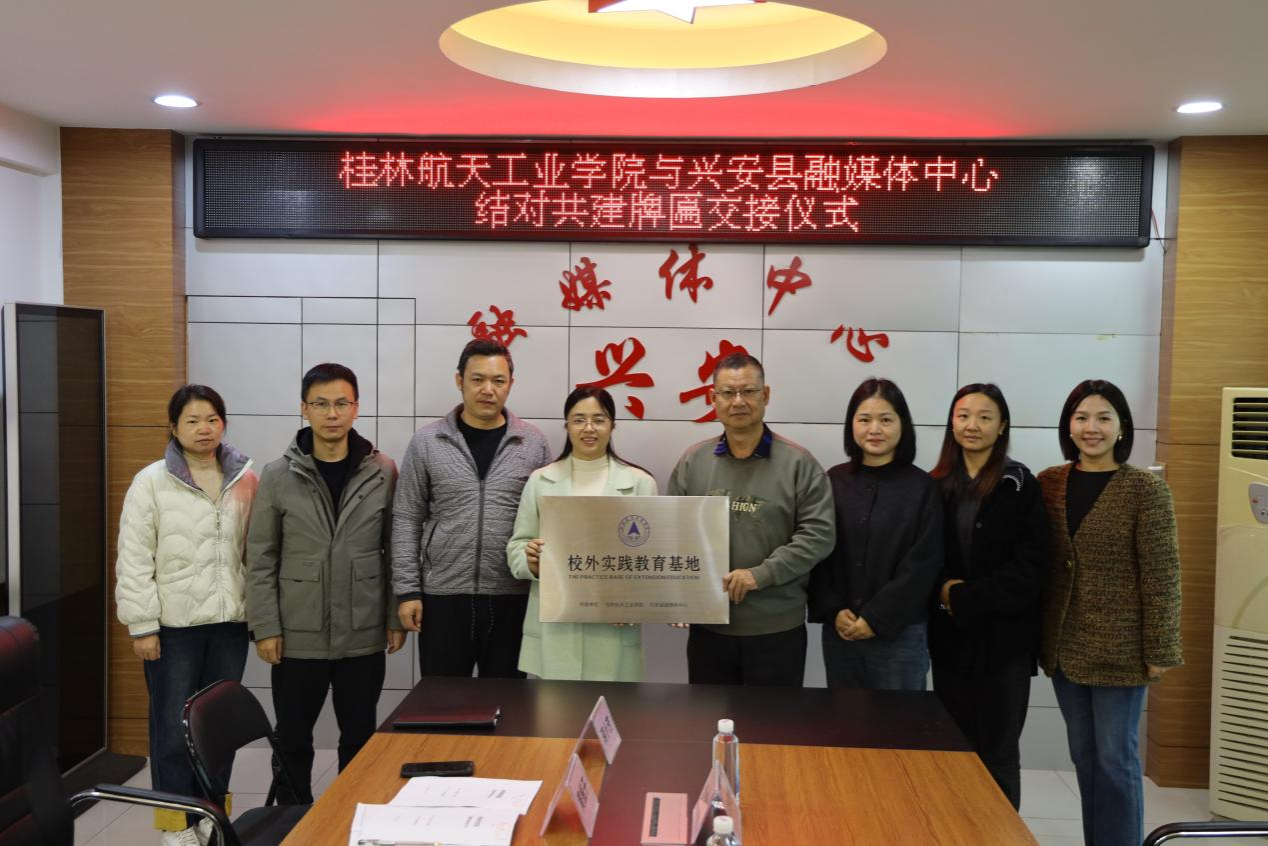 2025年10月22日,学院与兴安融媒体中心校企合作共建签约仪式在兴安融媒体中心隆重举行。学院代表叶桂郴、言瑶、尹伊倩一行与兴安融媒体中心主任邓桂荣、黄振开、肖帆等领导共同出席活动,双方就教师挂职、学生实习等校企合作内容展开深入交流,并举行了结对共建牌匾交接仪式。