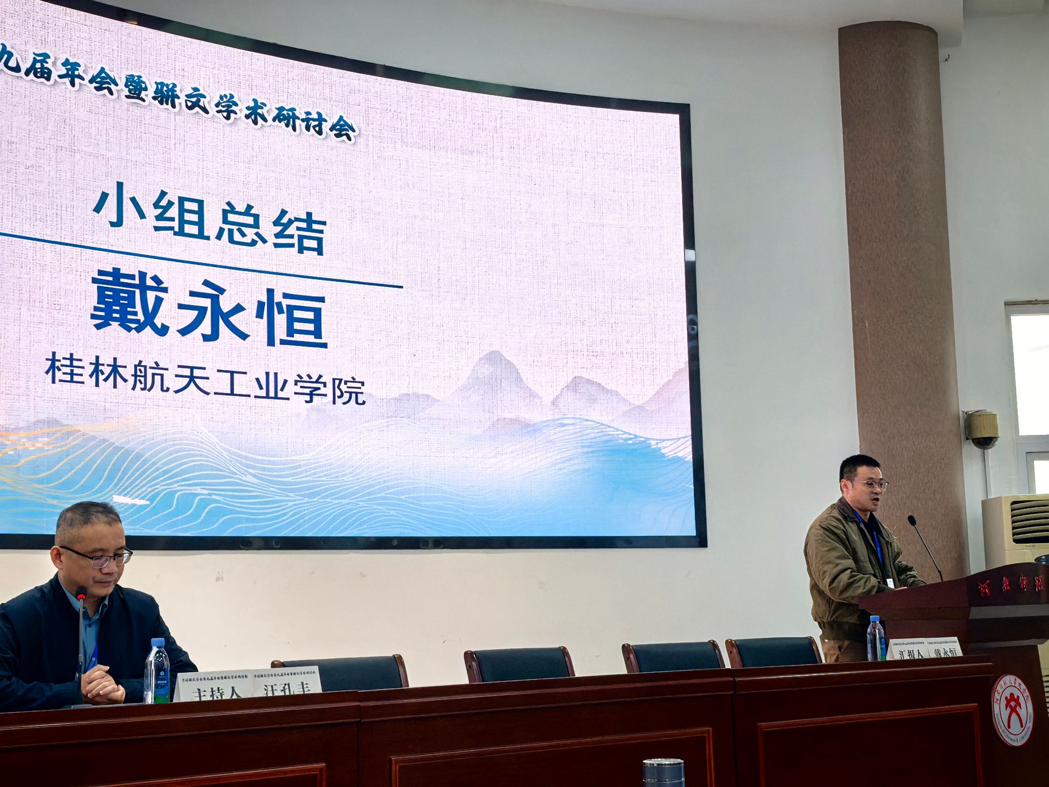 2025年10月17日至19日,“中国骈文学会第九届年会暨骈文学术研讨会”在河南新乡河南师范大学召开。我院教师戴永恒参加会议,在“骈文史与经典作家作品研究”分组讨论中汇报《骈散互动中的乱世心哀——莫友芝<影山草堂本末>、王闿运<影山草堂图铭>对读》的学术论文,并在大会中代表所在小组作小组研讨总结发言。