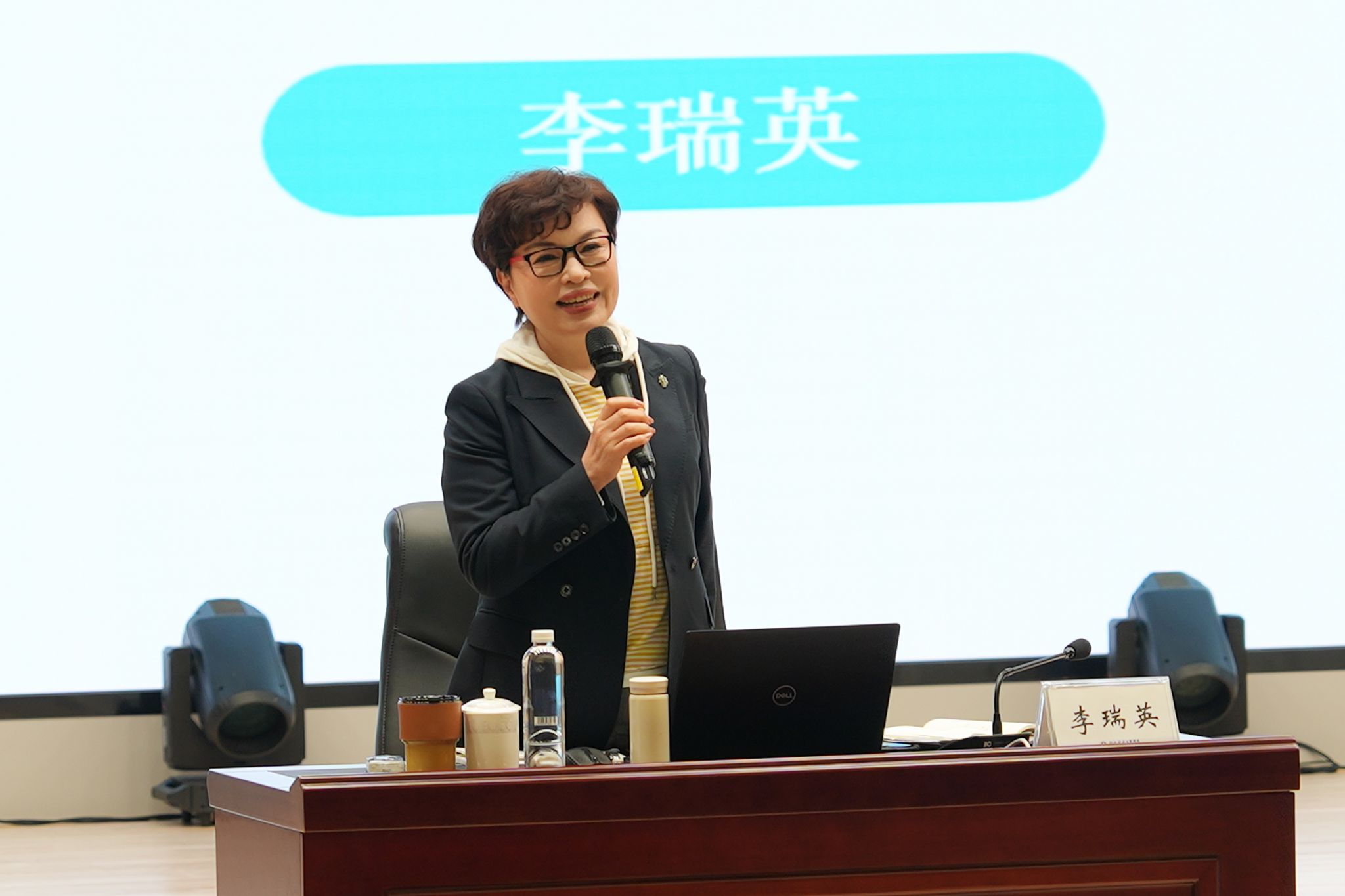 孙山林副书记首先代表学校对李瑞英老师的到来表示热烈欢迎,并简要介绍了其在播音主持领域的深厚造诣与卓越成就,现场师生以热烈的掌声表达了对李老师的崇敬与期待。