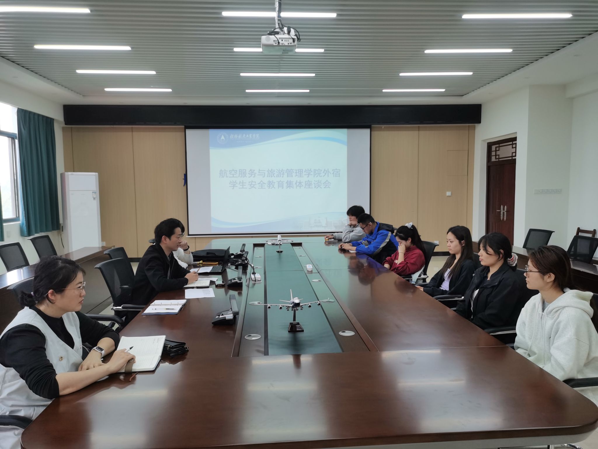 为切实加强学院校外住宿学生的安全教育与管理、提升学生安全防范意识与自我保护能力、保障外宿学生的人身财产安全与身心健康,2026年4月3日中午,航空服务与旅游管理学院于学院207会议室召开外宿学生安全教育集体座谈会。学院党委副书记张磊磊同志主持会议并发表讲话,全体在校外宿学生参加此次座谈会。