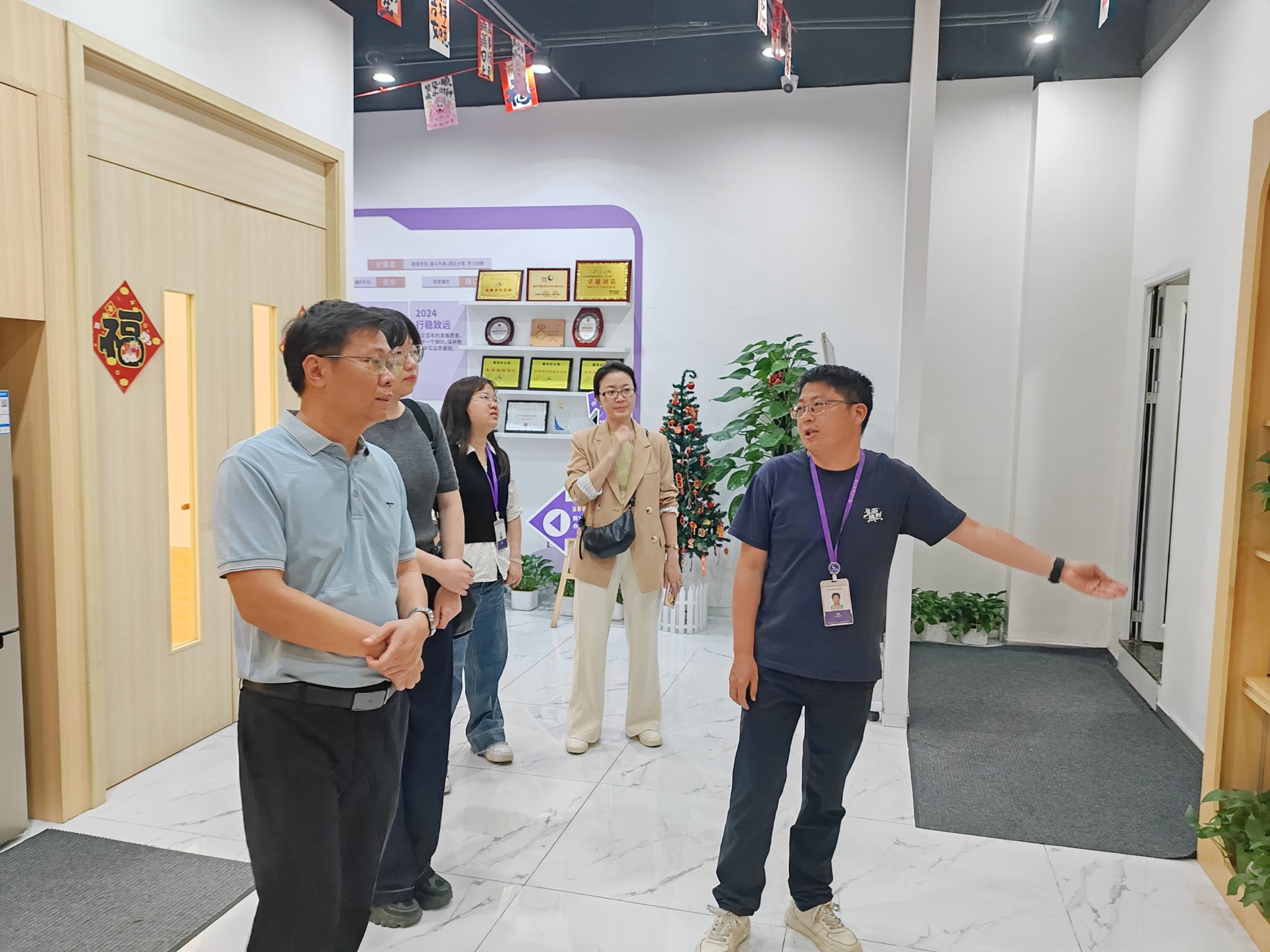 在惠州星火教育,林朝阳院长一行实地参观了企业教学场地和办公环境,深入了解机构的运营模式、师资培养体系及岗位需求情况。双方围绕应用型人才培养、实习实训基地建设、毕业生就业输送等议题展开座谈交流。文周详细介绍了星火教育在粤东地区的发展布局,表示当前对具备良好沟通能力和专业素养的管培生需求旺盛,期待与学院建立常态化合作机制,共同搭建人才输送绿色通道。
