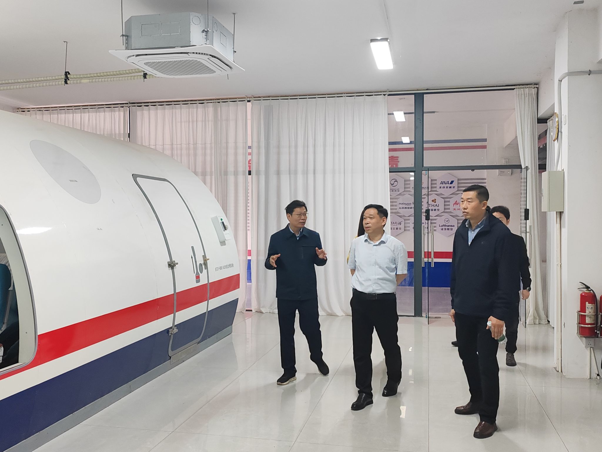 孙山林深入学院实验室、教学场所开展实地调研。先后前往学院茶艺实训室、礼仪形象设计实训室、航空服务模拟舱实验室以及携程合作直播间等场地,仔细查验了各实训室的功能布局、实验设备的配置与运行使用情况,询问了师生日常教学与科研工作的开展进展。