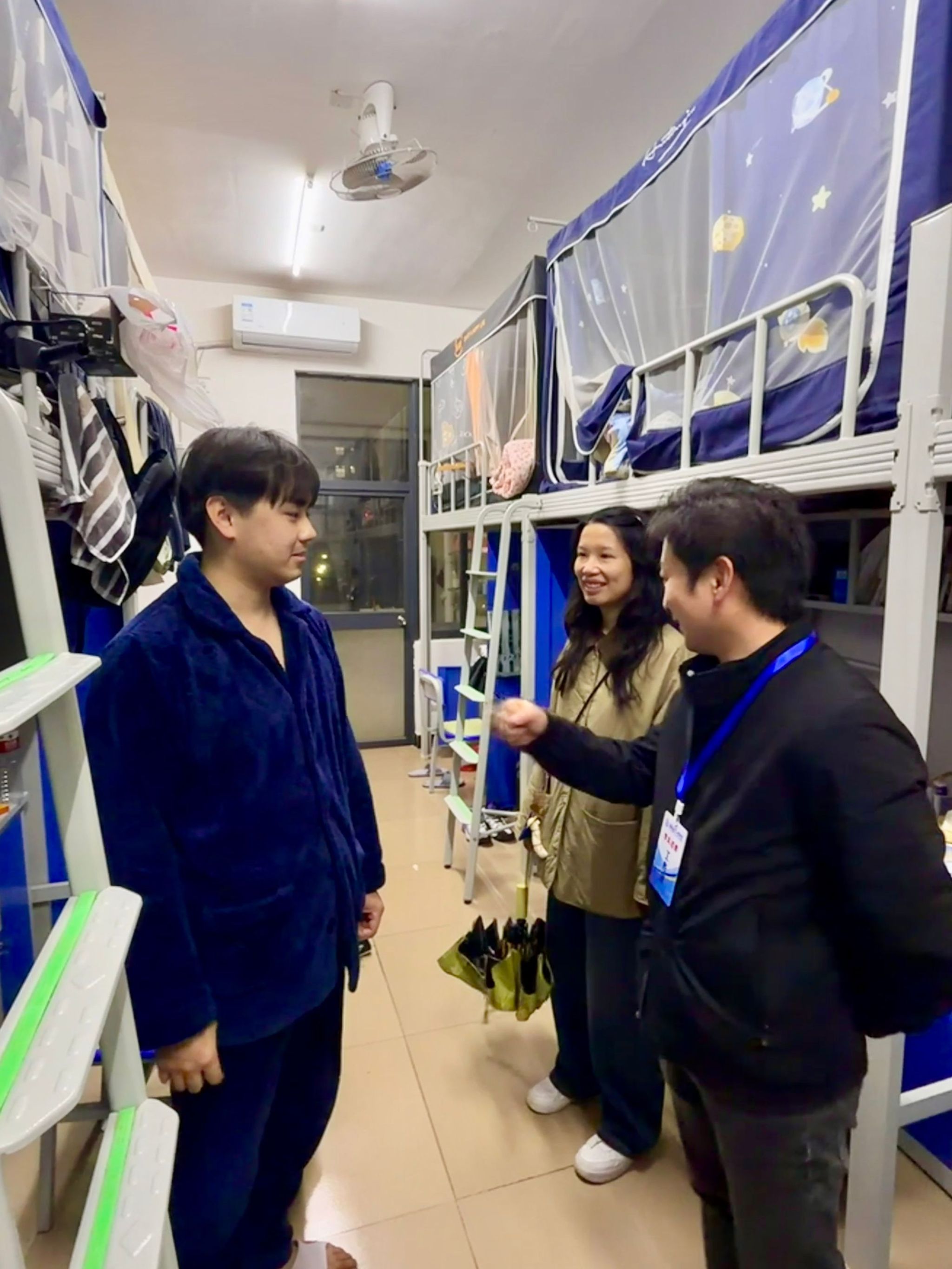 除了设施设备的安全检查,了解学生的开学准备情况和思想动态是此次走访的重点。每走进一间宿舍,老师们都与提前返校的同学进行了亲切交谈。老师们细心询问同学们的假期生活、返校适应情况以及新学期的学习规划,鼓励同学们及时调整作息,从“假期模式”切换至“开学模式”,以饱满的精神状态迎接第一堂课。