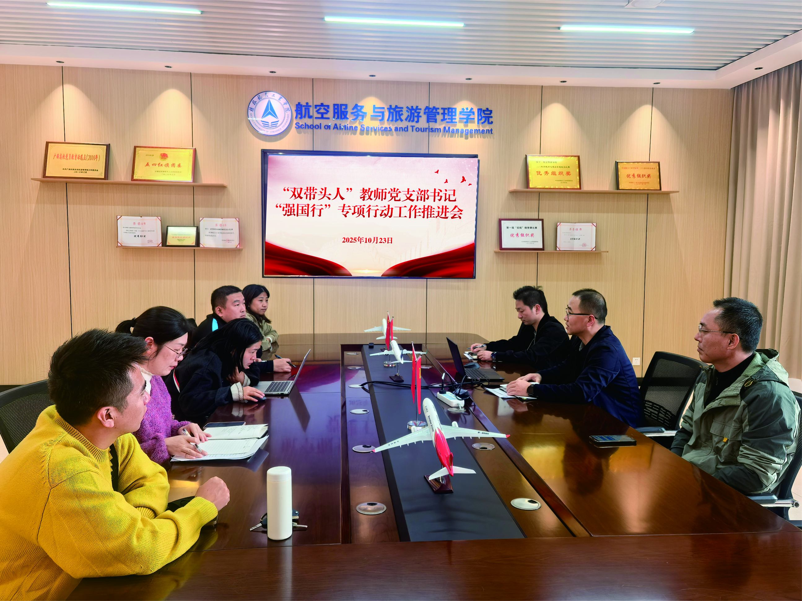 会议要求,教师党支部要精心谋划,细化方案,突出特色,确保“强国行”专项行动取得实效。要充分发挥“头雁效应”,引领广大教师党员在党建联建、教育教学、科学研究、社会服务等实践中勇担重任、建功立业,不断把支部建设成为推动学院事业发展的坚强战斗堡垒,为培养高素质航空服务与旅游管理人才、服务低空旅游建设贡献力量。