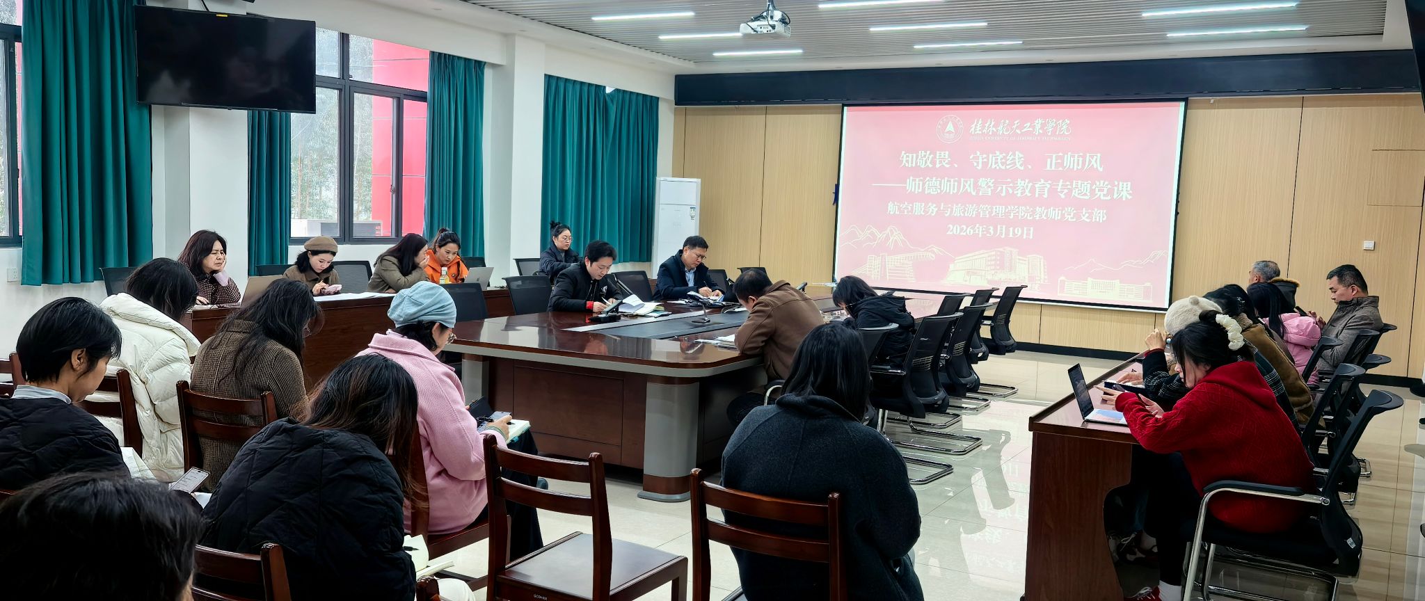 3月19日下午,学院教师党支部在探天楼C207会议室举办“知敬畏、守底线、正师风”师德师风警示教育专题党课,由学院党委副书记张磊磊主讲,支部40余名教师党员参加学习。